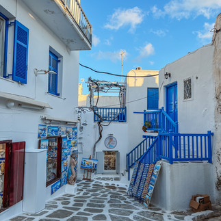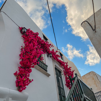 Puis, nous avons sillonnés, les adorables ruelles de la ville, avec leurs maisons blanches et les stores bleus ou autres couleurs pastels, totalement dans l’ambiance de la Grèce par rapport à d’autres îles du pays.
